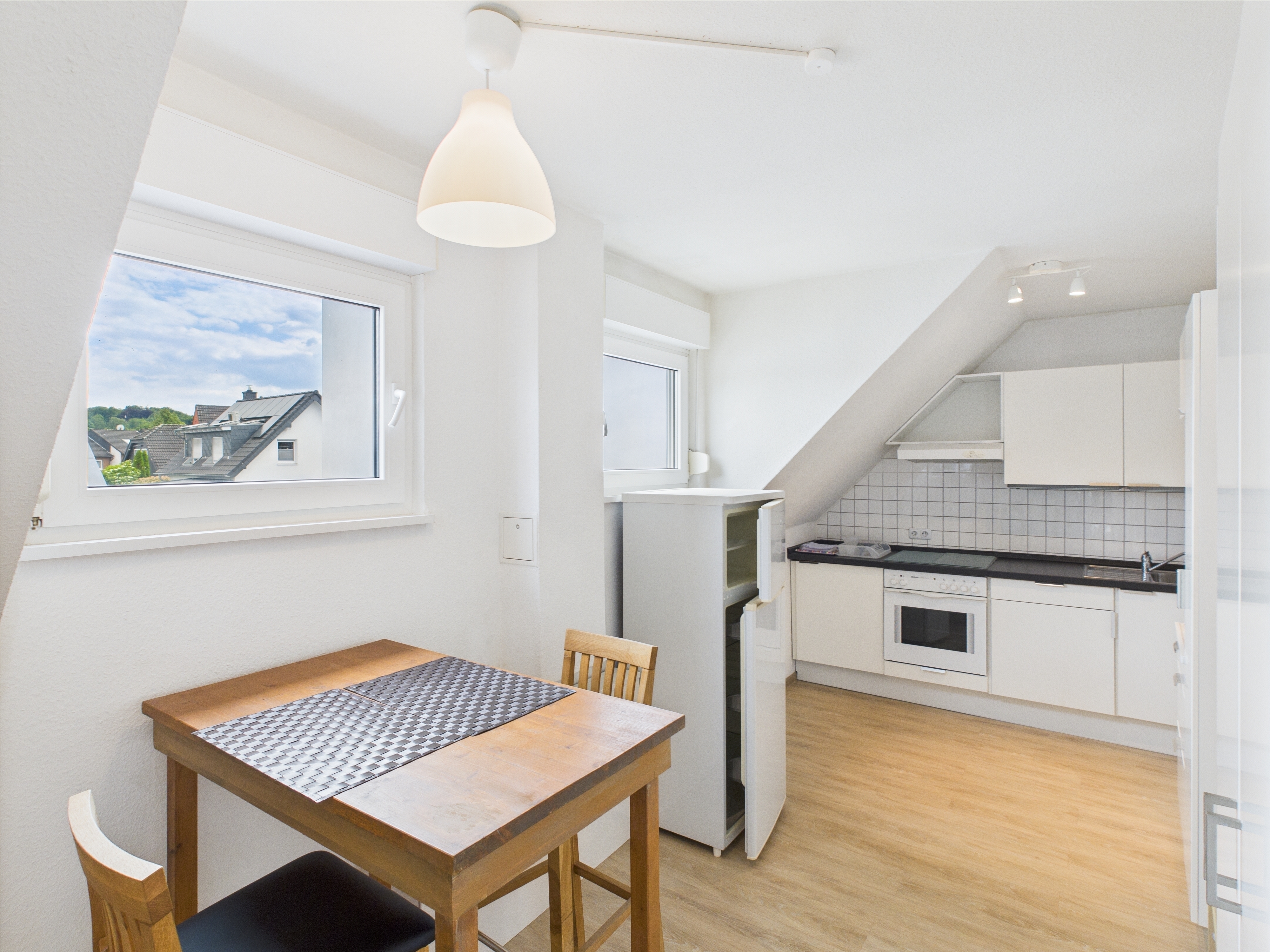 Auch das Dachgeschoss beherbergt eine großzügige Wohneinheit von 63 m² mit 2 gemütlichen Zimmern und einer offen, modernen Küche und ein Badezimmer mit Dusche. Das besondere Highlight dieser lichtdurchfluteten Wohnung ist der ausgebaute Dachboden mit separatem WC, den Sie als Arbeitszimmer oder Homeoffice nutzen können und über eine Holztreppe begehen können. Diese Variante einer Maisonette - Wohnung verleiht den Räumen eine warme und gemütliche Atmosphäre. Auch die dazu gehörende Loggia , ebenfalls zur Südseite ausgerichtet, bietet Ihnen viel Wohnkomfort.
