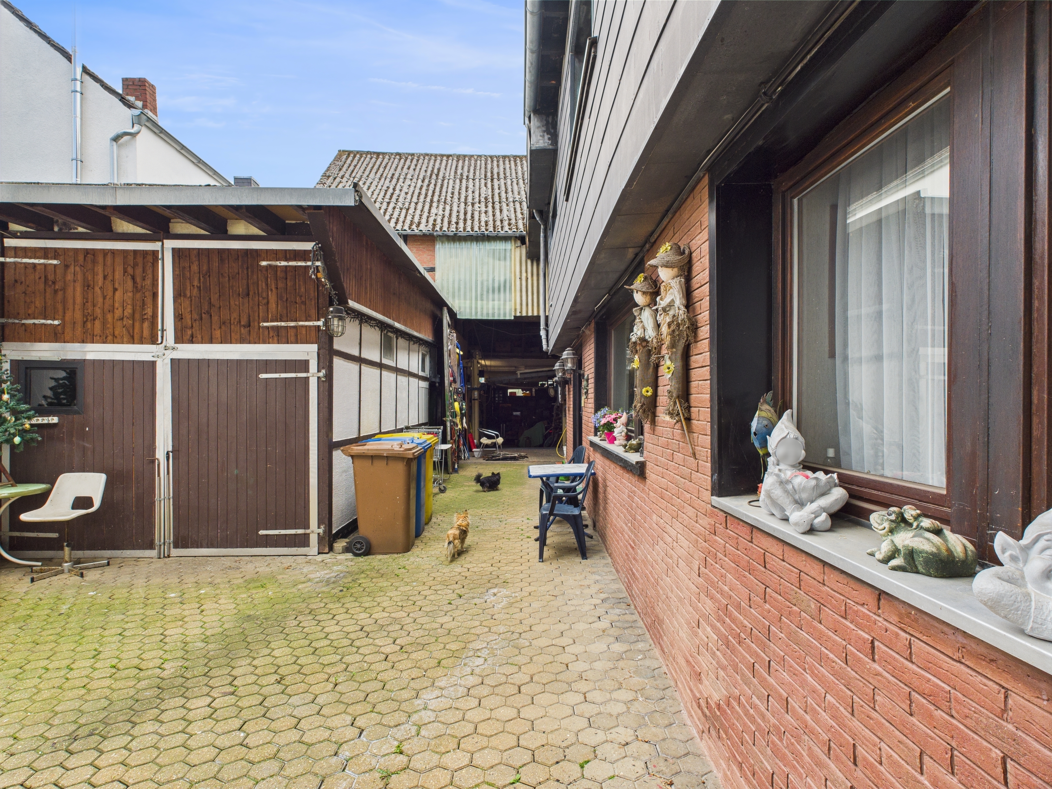 Sie erreichen den Hof über eine große Toreinfahrt des Mehrfamilienhauses, welches mit einem Sektionaltor geschlossen wird und auf der Hofseite ebenso mit einem elektrischen Tor versehen ist. Daher ist diese Einfahrt als Garage für 2 Autos nutzbar und es erspart Ihnen die Parkplatzsuche und erleichtert Ihnen den Alltag.