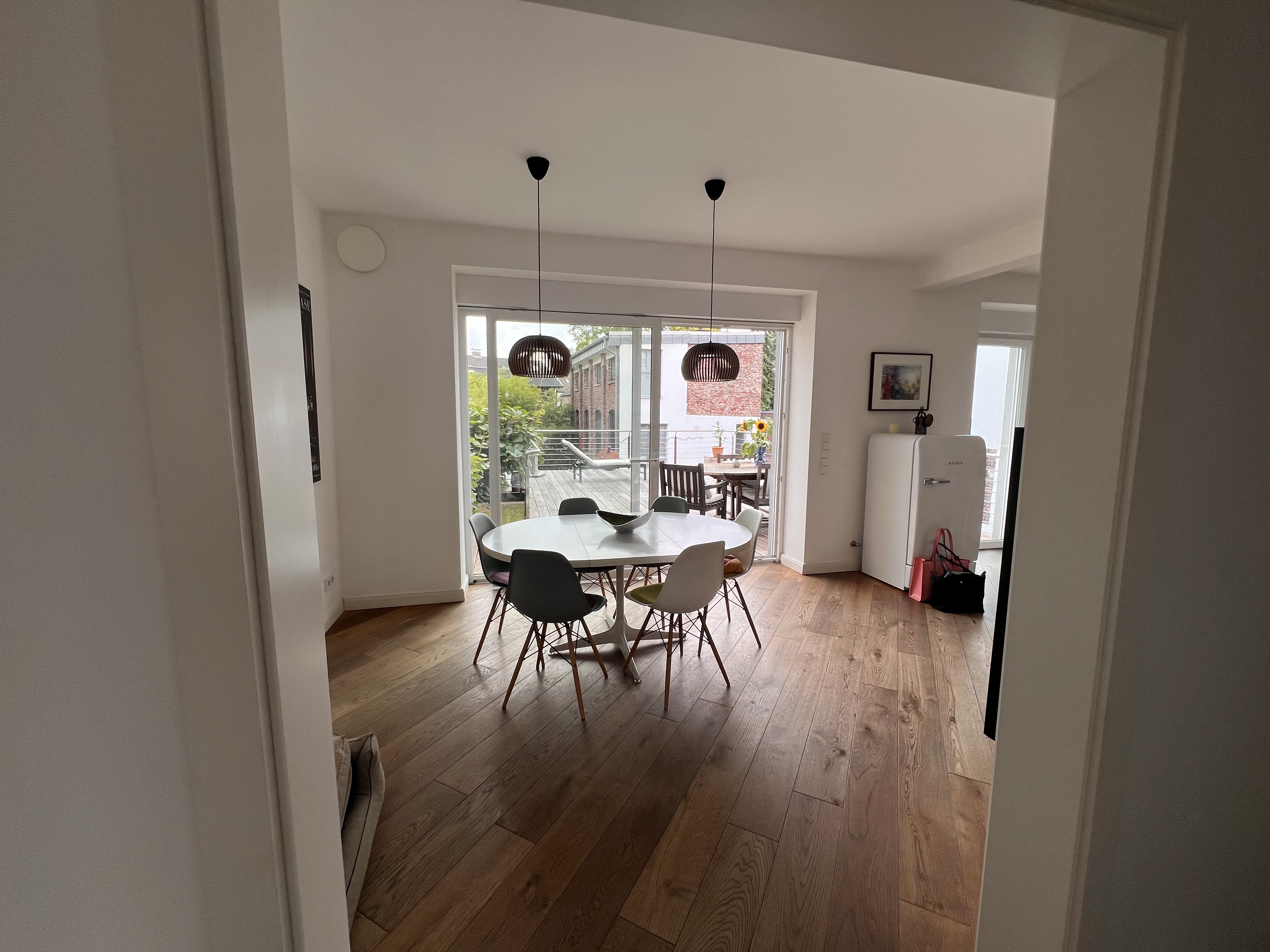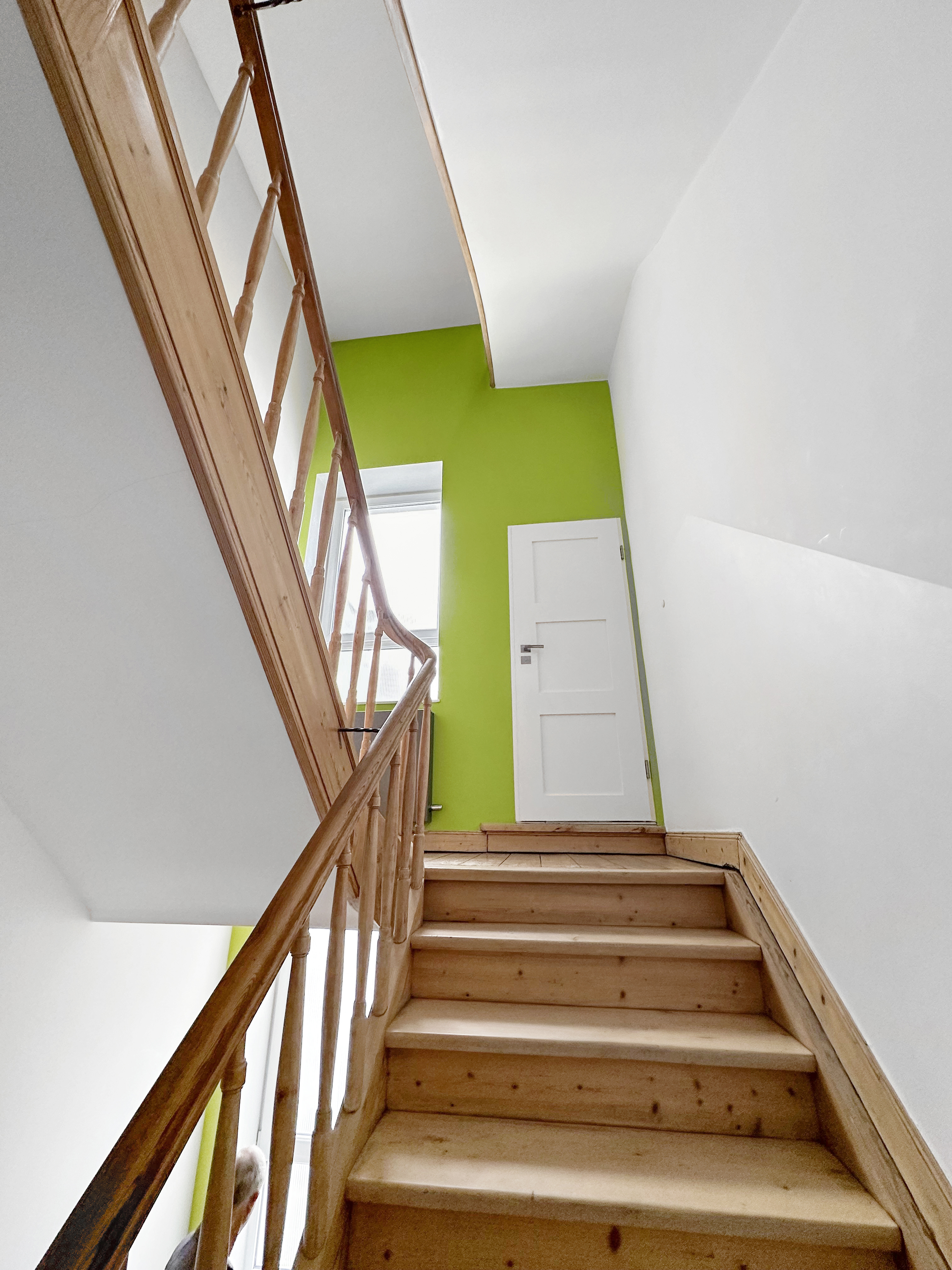 Herzstück des Hauses ist das großzügige, lichtdurchflutete Treppenhaus mit hochwertigen Vollholzdielen, dass alle Ebenen stilvoll verbindet. Mit zwei Hauszugängen – von der Straße und dem Innenhof – bietet dieses Haus flexible Erschließungsmöglichkeiten. Große Fenster mit Dreifachverglasung und elektrische Rollläden schaffen ein helles, offenes Ambiente bei gleichzeitigem Schallschutz.