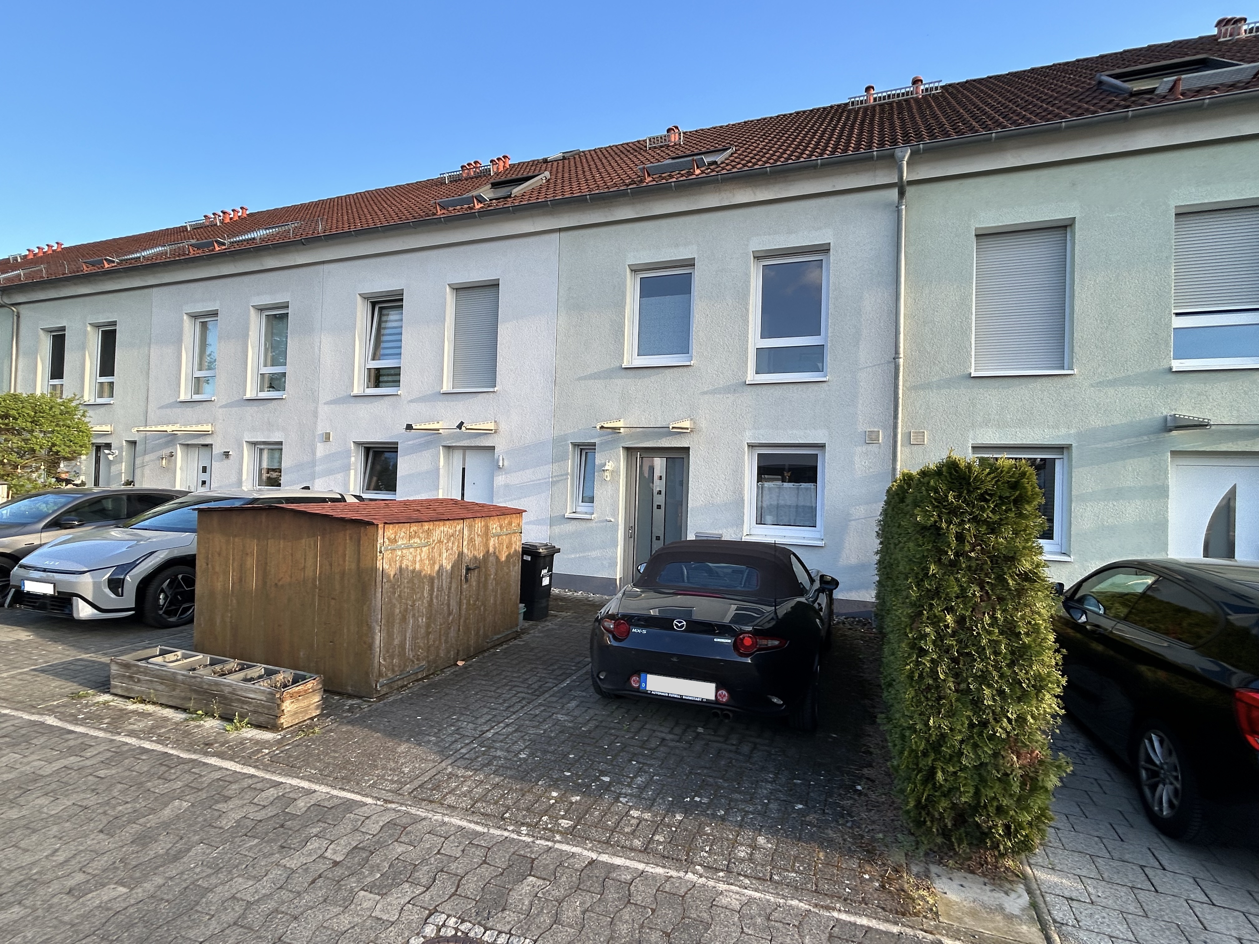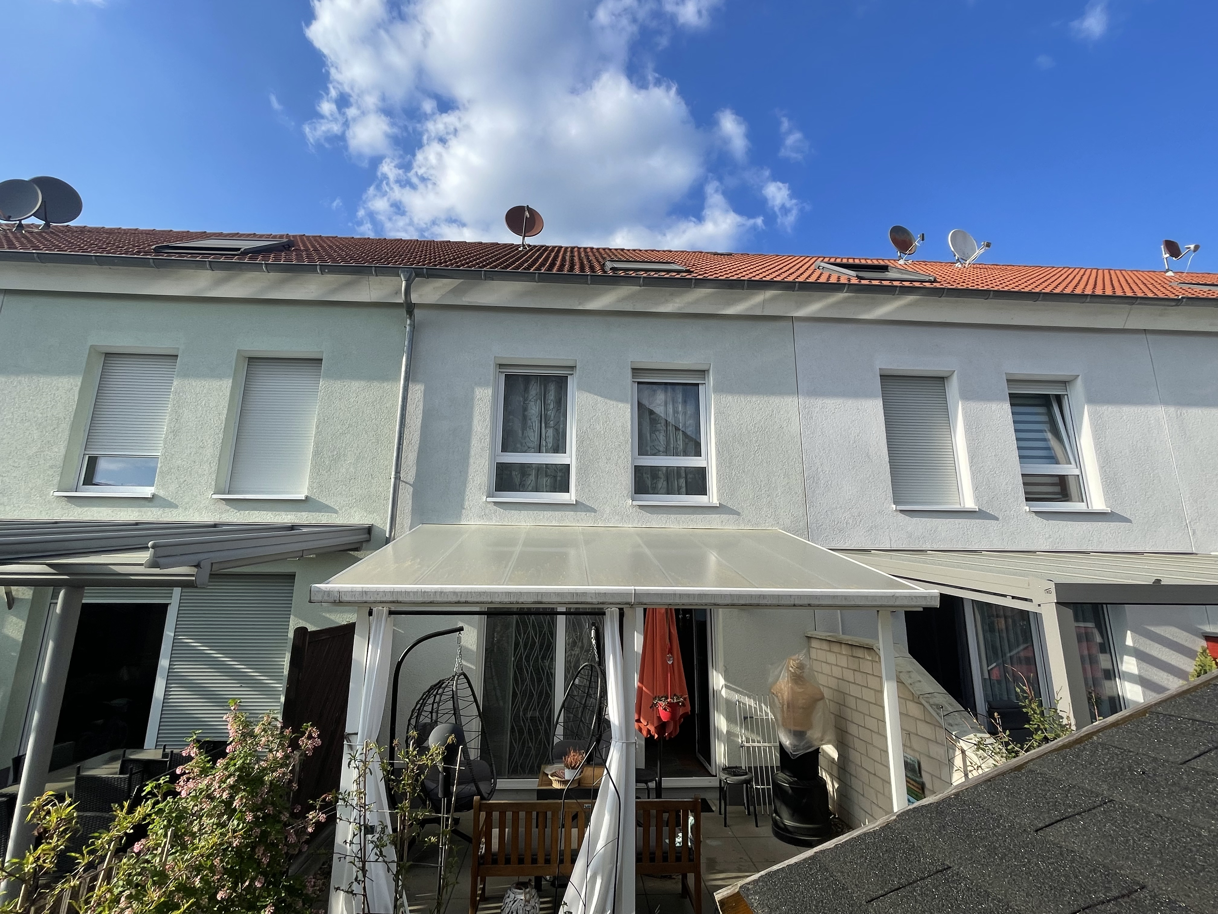 Ein besonderes Highlight ist der Außenbereich: Das ca. 150 m² große Grundstück bietet Raum für entspannte Stunden im Freien. Die überdachte Terrasse lädt bei jedem Wetter zum Verweilen ein, während eine Gartenhütte zusätzlichen Stauraum oder vielseitige Nutzungsmöglichkeiten bietet. Das Grundstück ist in eine Eigentumsgemeinschaft mit den benachbarten Häusern eingebunden. Diese Struktur verbindet die Vorteile eines eigenen Hauses mit einer gemeinschaftlich geregelten Verwaltung.