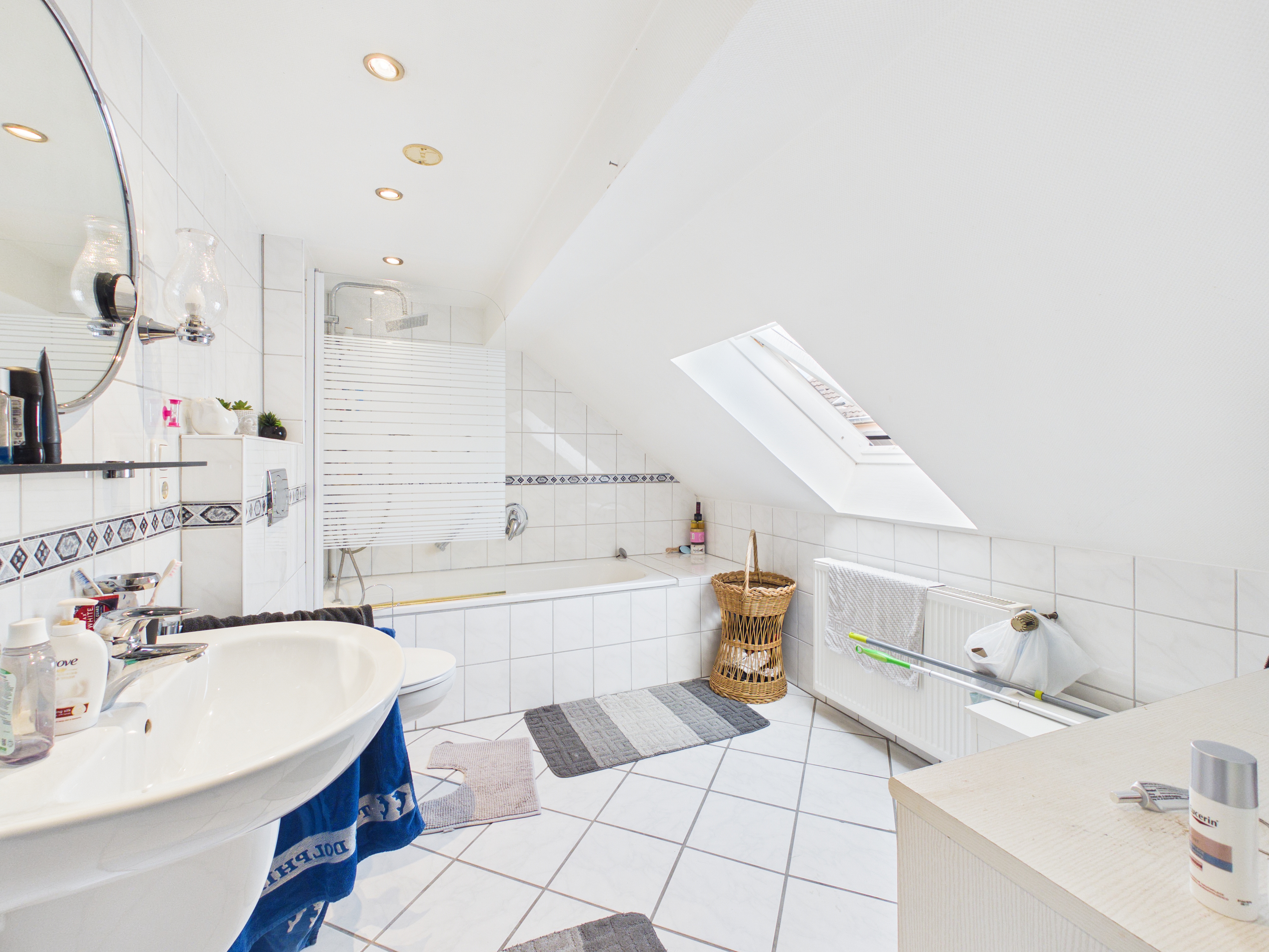 Das Dachgeschoss eröffnet zusätzliche Gestaltungsmöglichkeiten! Zwei helle Zimmer eignen sich hervorragend als Kinder-, Gäste- oder Arbeitszimmer. Ein großzügiges Badezimmer mit Badewanne und Fenster sorgt für eine freundliche und angenehme Atmosphäre.