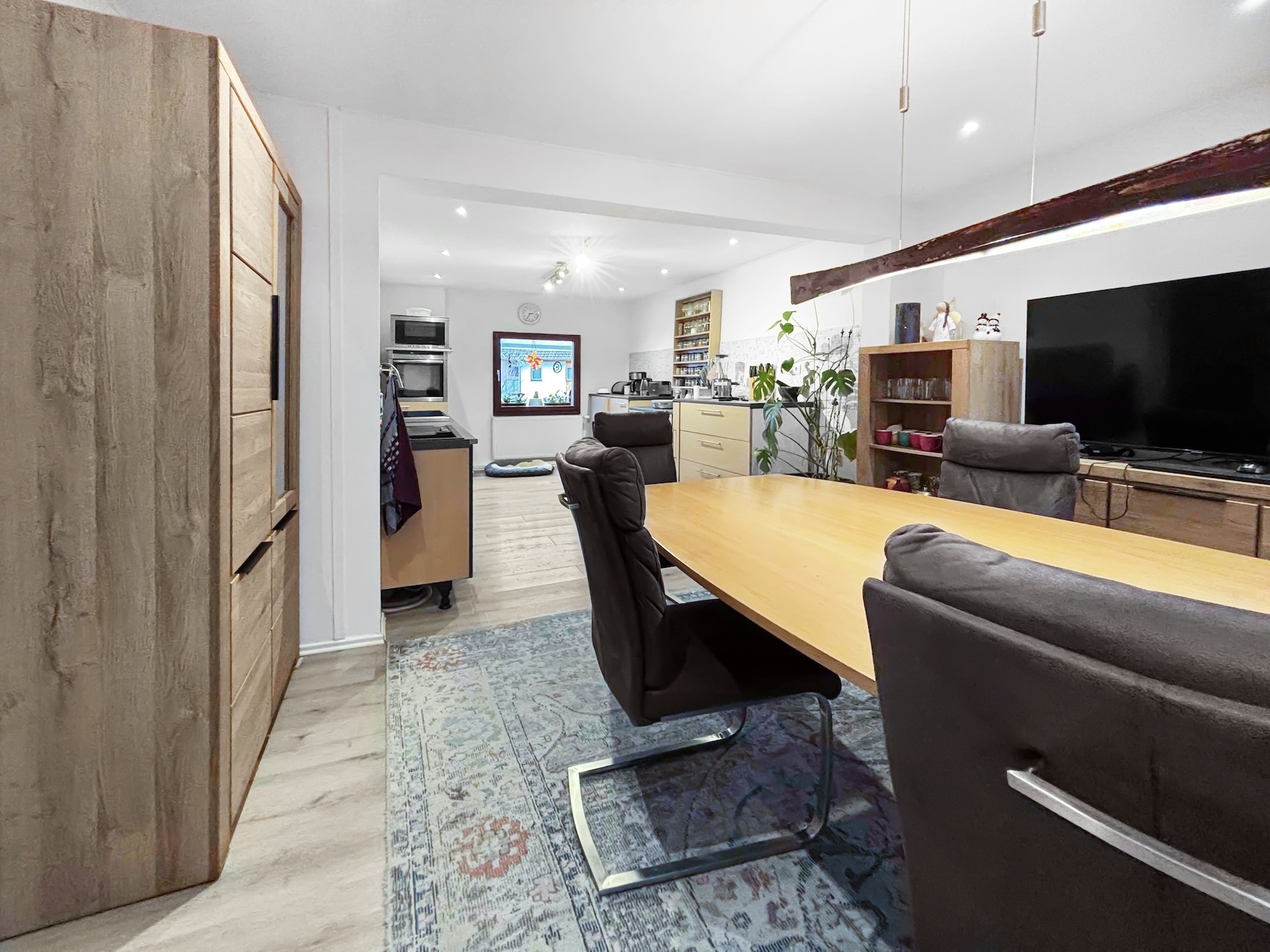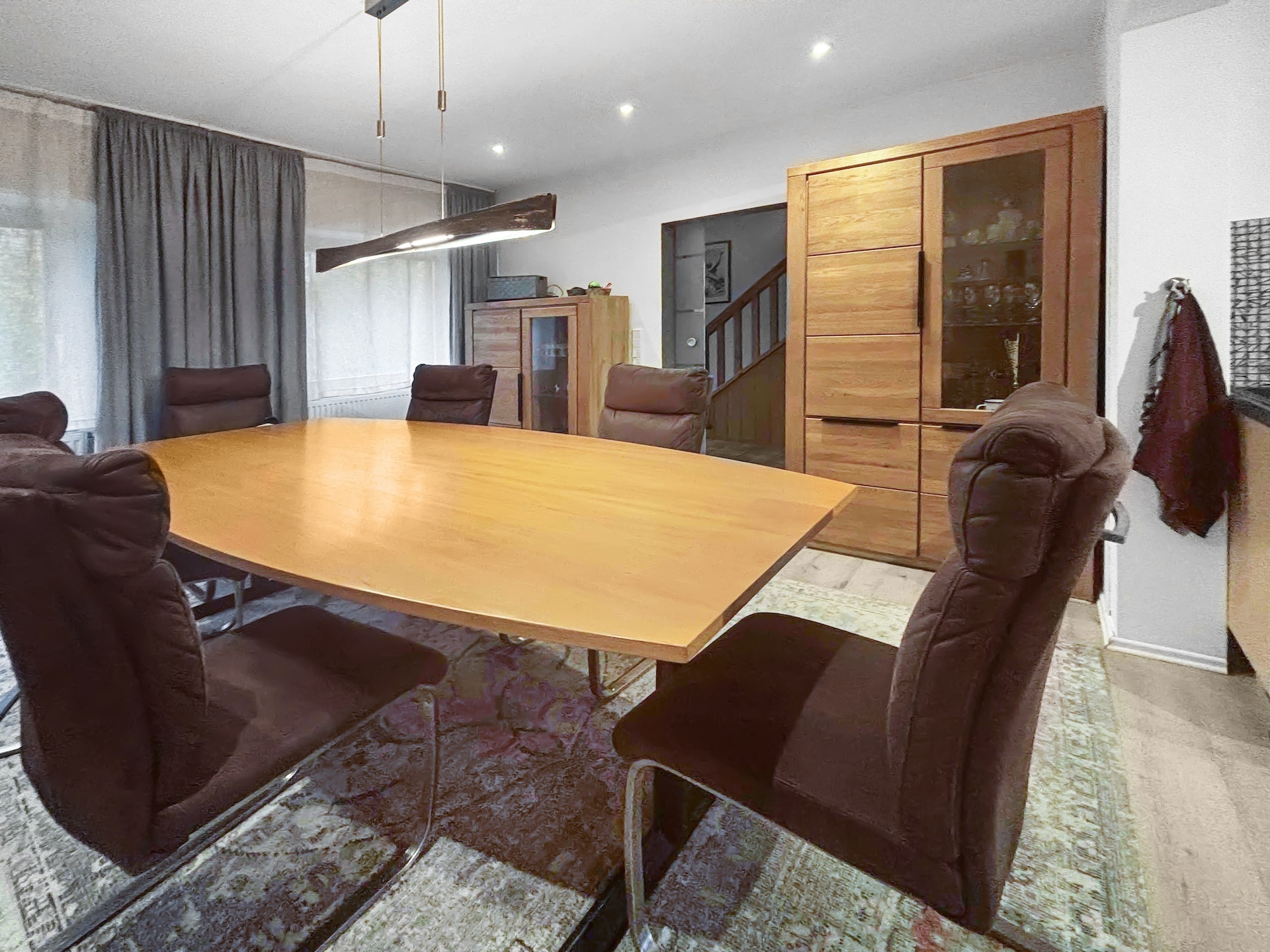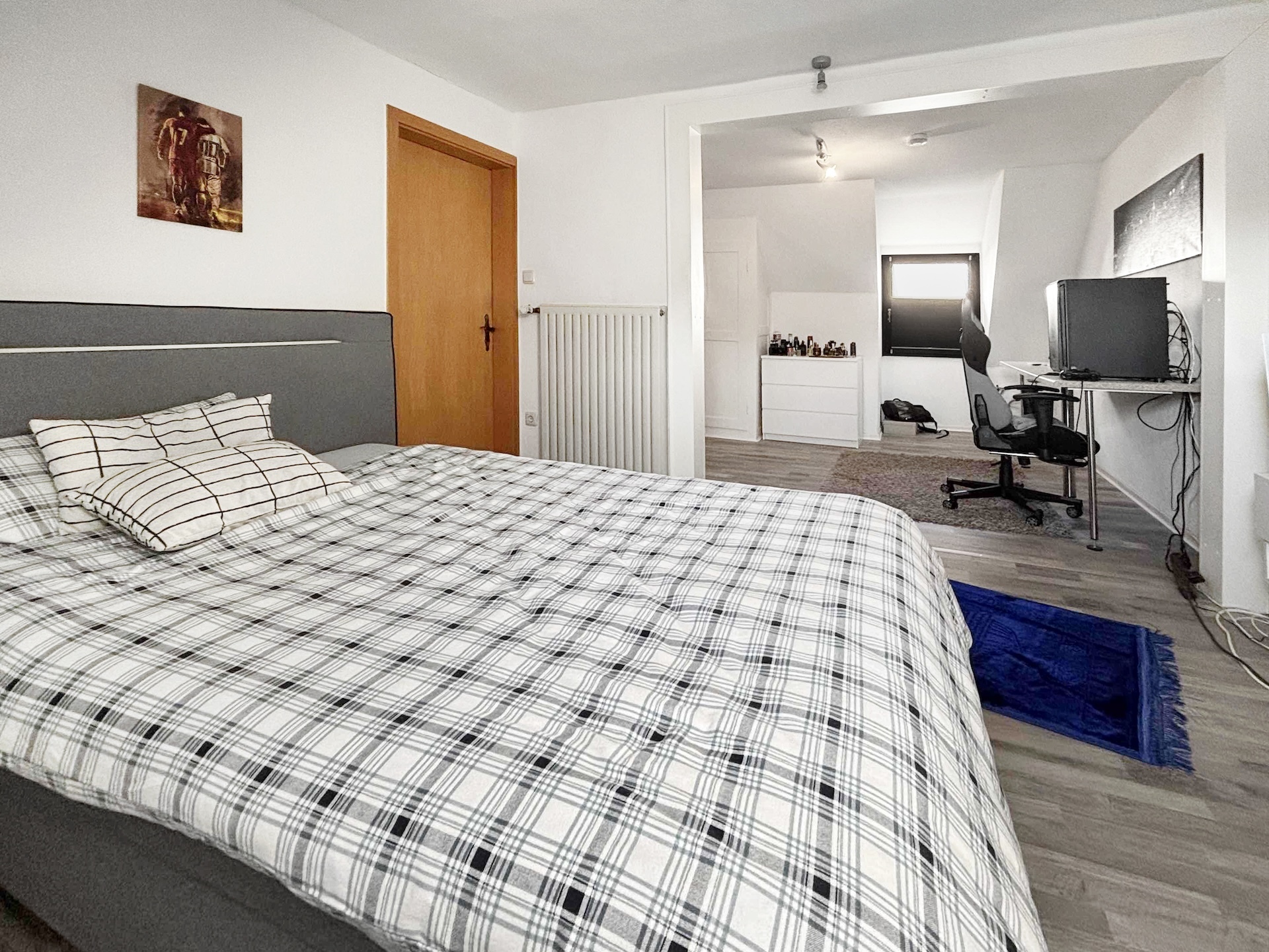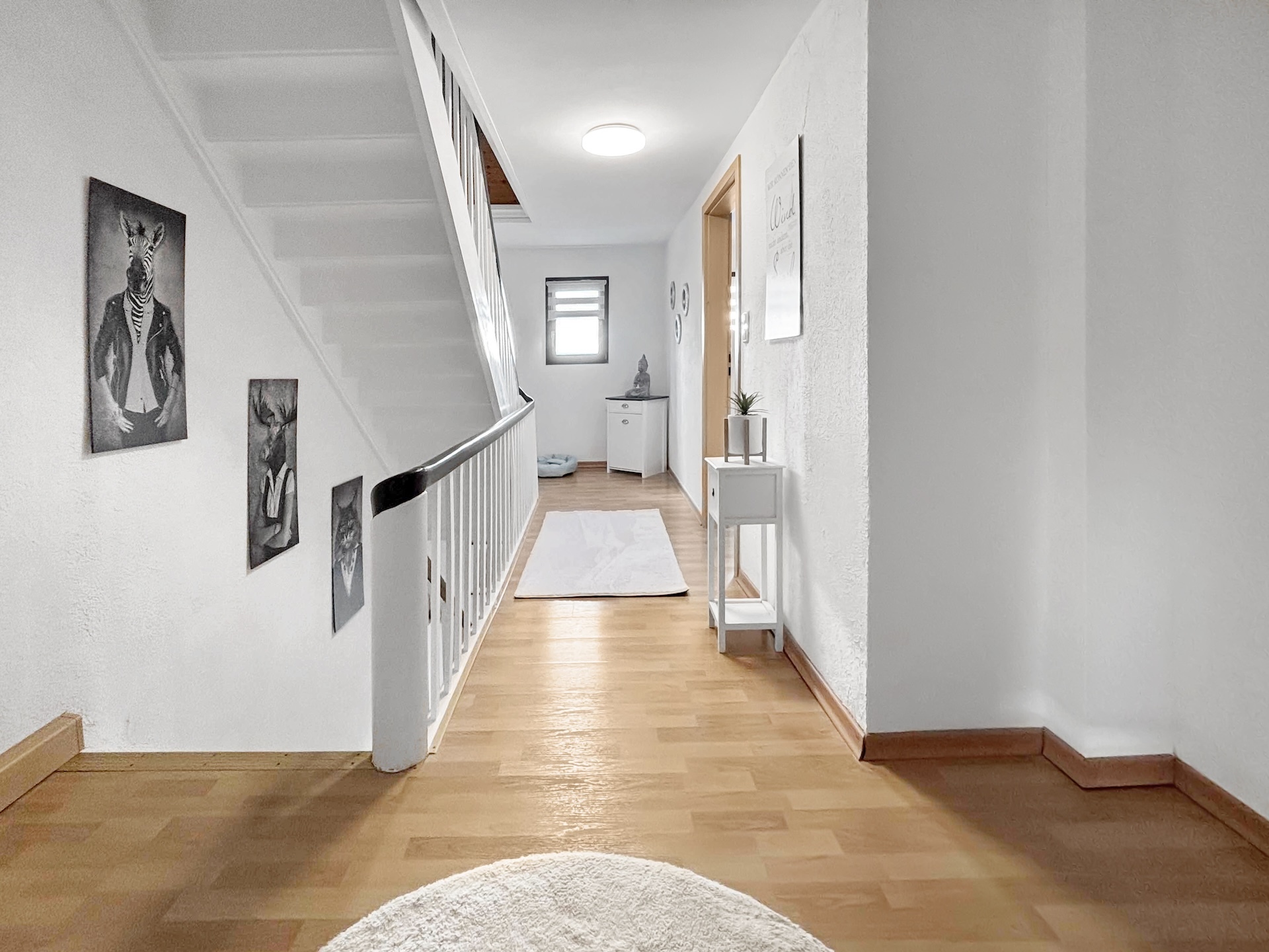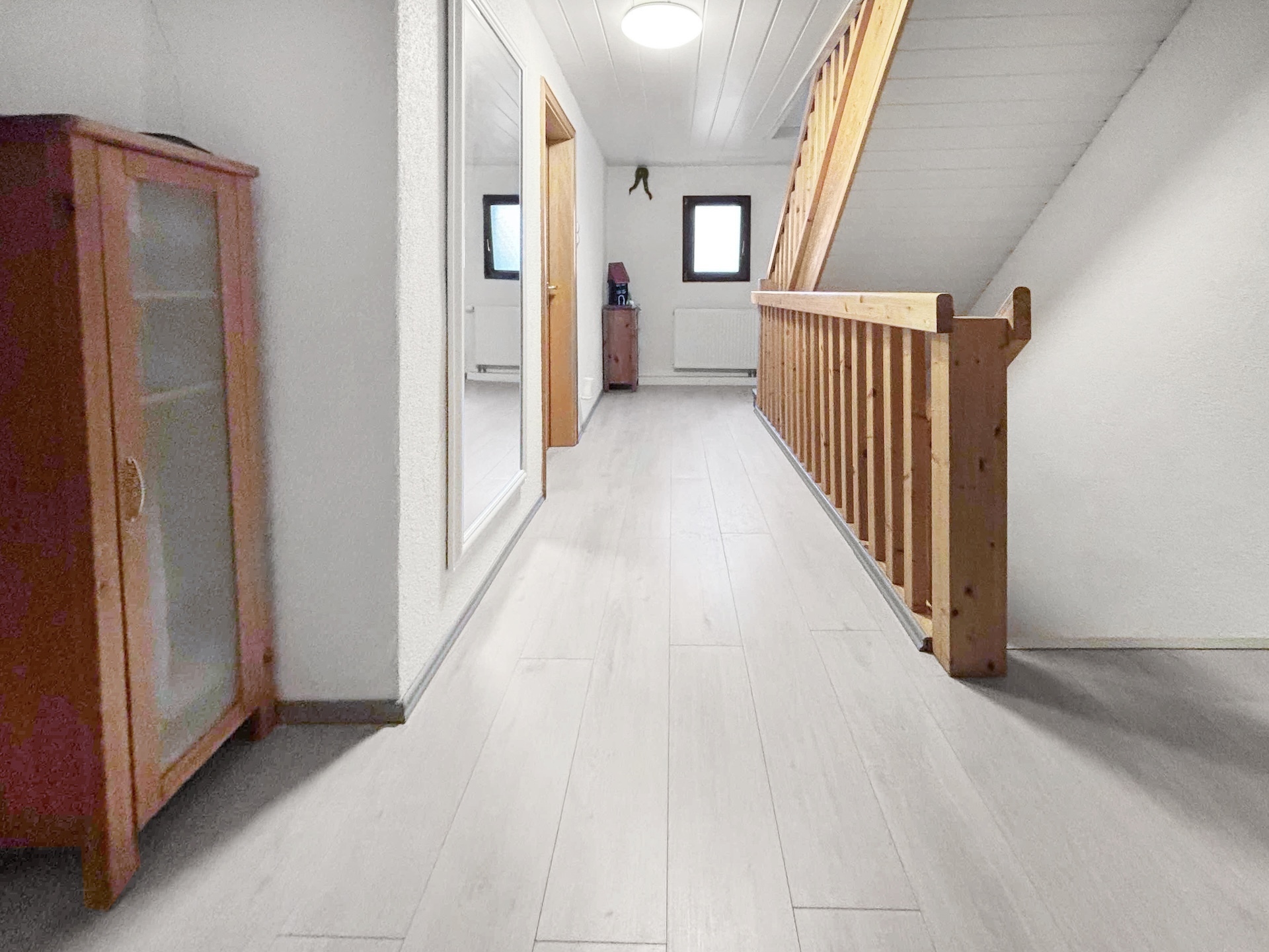 Die linke Doppelhaushälfte wurde in den letzten Jahren kernsaniert und bietet auf 153 m² Wohnfläche fünf Zimmer, darunter vier Schlaf- oder Arbeitszimmer. Ein großzügiger, lichtdurchfluteter Wohn- und Essbereich mit offener Küche schafft eine einladende Atmosphäre. Der direkte Zugang zum Balkon und eine separate Terrasse hinter dem Haus laden zum Entspannen ein. Das Obergeschoss beherbergt zwei helle, gut geschnittene Zimmer, die vielseitig genutzt werden können z.B. als Büro oder Kinderzimmer, sowie ein modernes Tageslichtbad mit Dusche und Wanne. Auch das geräumige, einladende Dachgeschoss verfügt über zwei weitere gemütliche Schlafzimmer mit einem Ankleidebereich. Im Keller befinden sich eine Waschküche, ein Technikraum, ein Abstellraum und eine große Hobbywerkstatt. Ein Außenstellplatz vor dem Haus sorgt für zusätzlichen Komfort.
