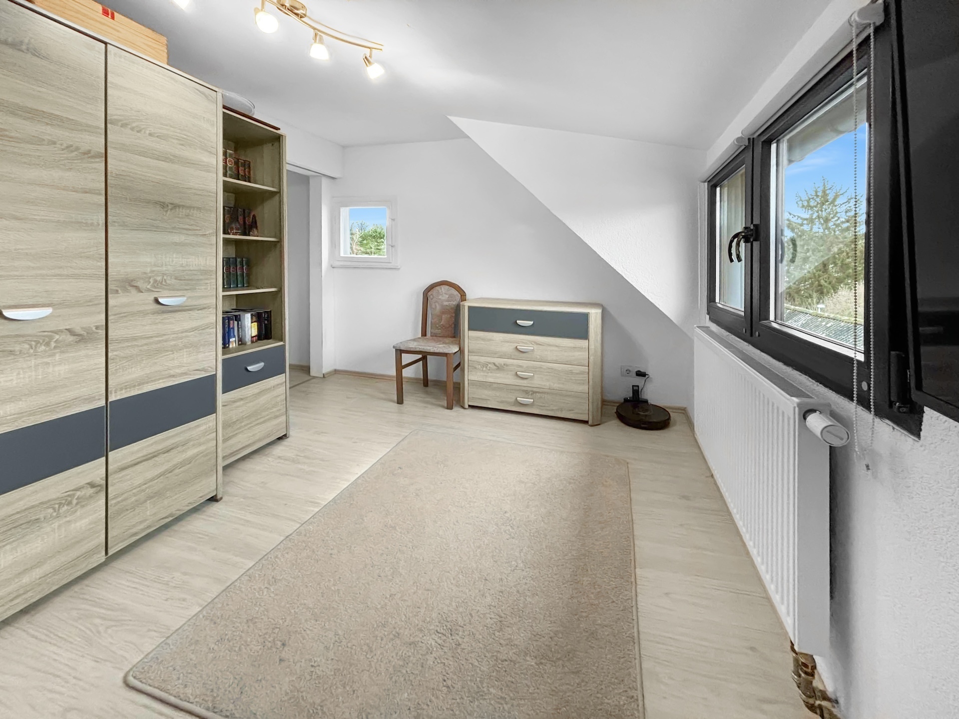 Die rechte Doppelhaushälfte umfasst 152 m² Wohnfläche mit fünf Zimmern, darunter vier Schlafzimmer. Eine helle Küche, ein separates Esszimmer und ein gemütliches Wohnzimmer laden zum Verweilen ein. Das Obergeschoss beherbergt zwei gut geschnittene Zimmer, die vielseitig genutzt werden können, z. B. als Ankleidezimmer, Büro, Kinderzimmer, sowie ein helles Tageslichtbad mit Dusche. Auch das geräumige Dachgeschoss verfügt über ein großes Schlafzimmer im Loft – Charakter, welches auch geteilt werden könnte, um weiteren Wohnraum zu schaffen. Ebenso befindet sich auf dieser Etage ein praktischer Abstellraum. Ein Balkon und eine Terrasse bieten einen wunderschönen Blick in den Garten. Neben einer separaten Waschküche und einem Heizungsraum bietet der voll unterkellerte Bereich zusätzlichen Stauraum. Ein Außenstellplatz und eine Garage neben dem Haus erleichtern Ihnen den Alltag, sowie eine Wallbox für Ihr Elektroauto rundet das Angebot ab und sorgt für nachhaltige Mobilität. Beide Doppelhaushälften sind aktuell vermietet und generieren jeweils eine Kaltmiete von 1200€, wodurch sie sich als nachhaltige und renditestarke Kapitalanlage eignen.