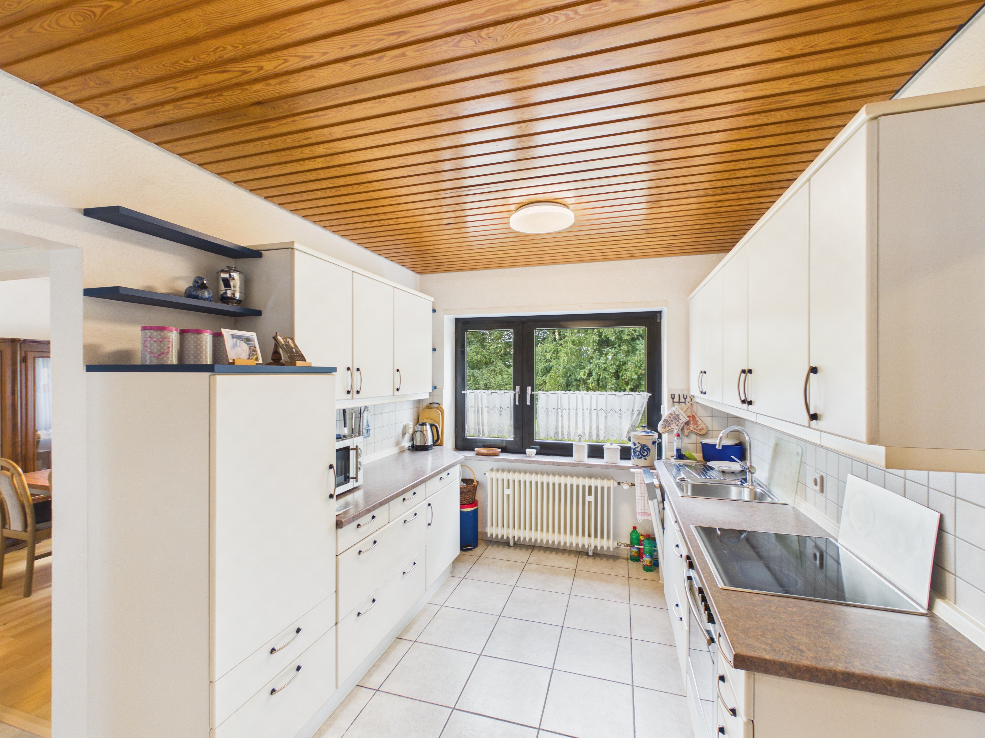 Die vorhandene Einbauküche (nicht im Kaufpreis enthalten) schafft ideale Voraussetzungen für gemeinsames Kochen. Das moderne Badezimmer mit bodentiefer Dusche überzeugt durch zeitgemäßen Komfort und stilvolles Design.