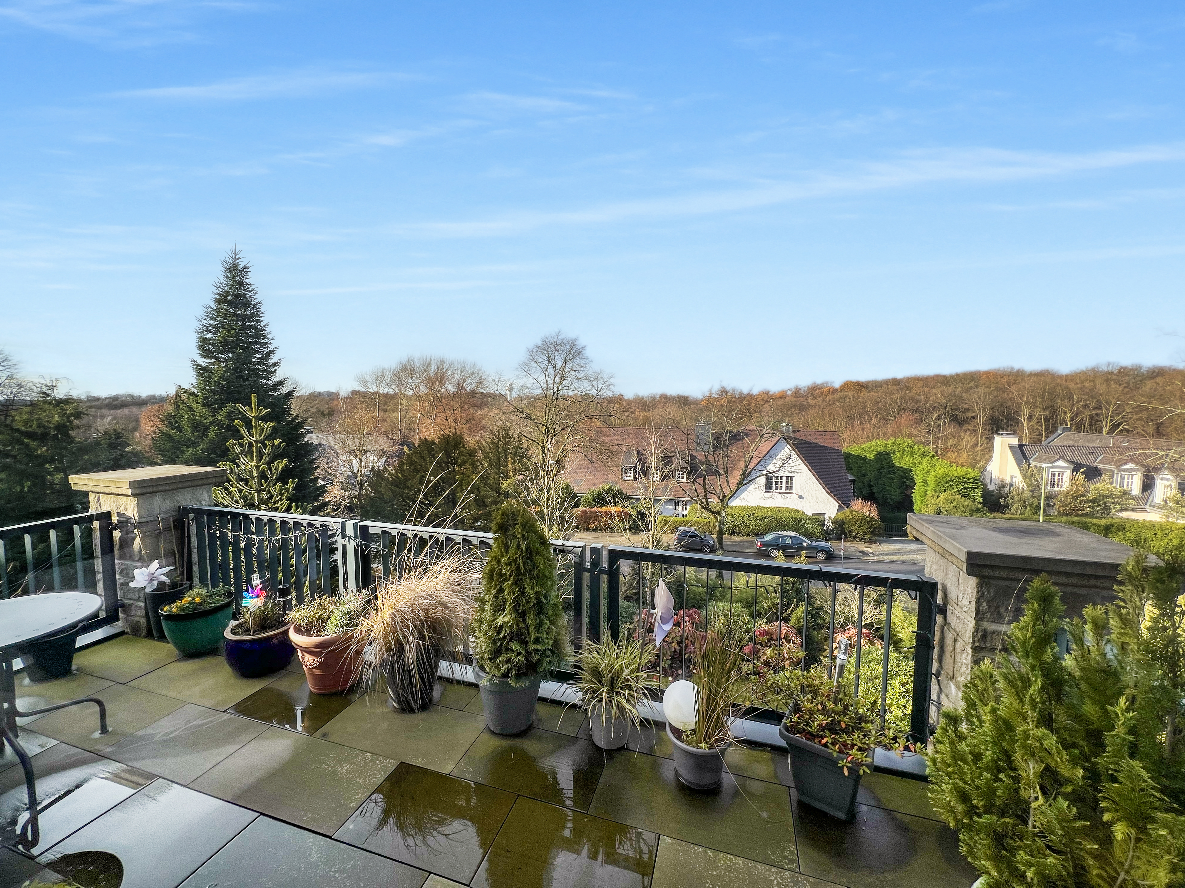 Das ganz besondere an dieser Wohnung bemerken Sie sofort, wenn Sie das wunderschöne Wohn.-Esszimmer betreten - den vollständig verglasten Giebel mit el. Außenjalousien! Genießen Sie einfach diesen offenen Blick über die Dächer und mitten ins Grüne!